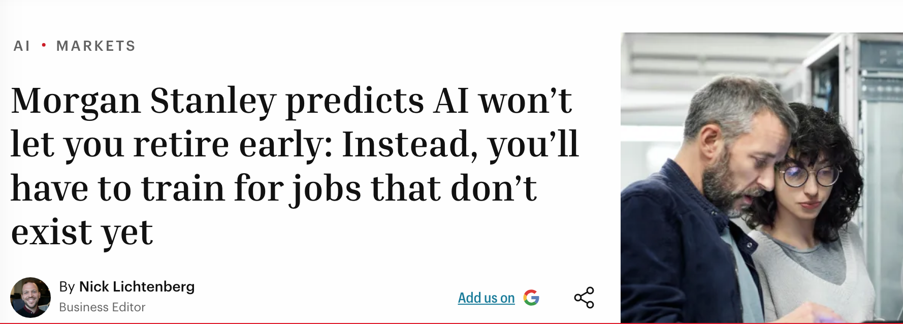 【环球网财经综合报道】据Fortune等外媒报道,近期市场对人工智能替代白领工作的担忧持续升温,软件板块估值显著回调,多位科技高管发出就业冲击预警。摩根士丹利最新跨资产研究报告显示,人工智能不会造成大规模永久性失业,劳动者将转向大量目前尚不存在的新岗位,需接受适配培训以适应转型。