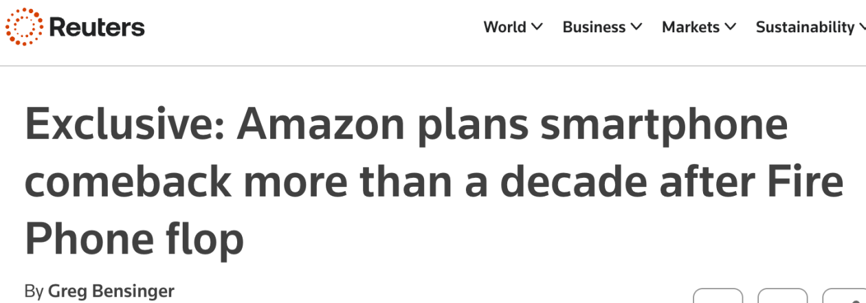 【环球网科技综合报道】3月22日消息,据路透社援引四位知情人士消息,在放弃Fire Phone十多年后,亚马逊正悄然布局智能手机市场新棋局,开发一款名为“Transformer”的新智能手机项目,计划推出一款人工智能驱动的设备,并深度集成Alexa及其广泛的服务生态系统。