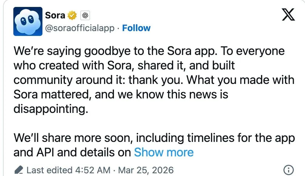 Sora的落幕为全行业敲响警钟