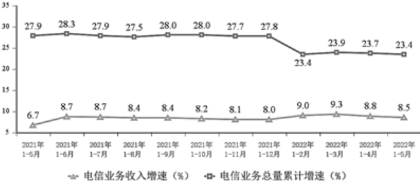1—5月电信业务收入累计完成6650亿元,同比增8.5%