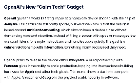 • OpenAI推出“Calm Tech”硬件设备 发力消费电子新赛道